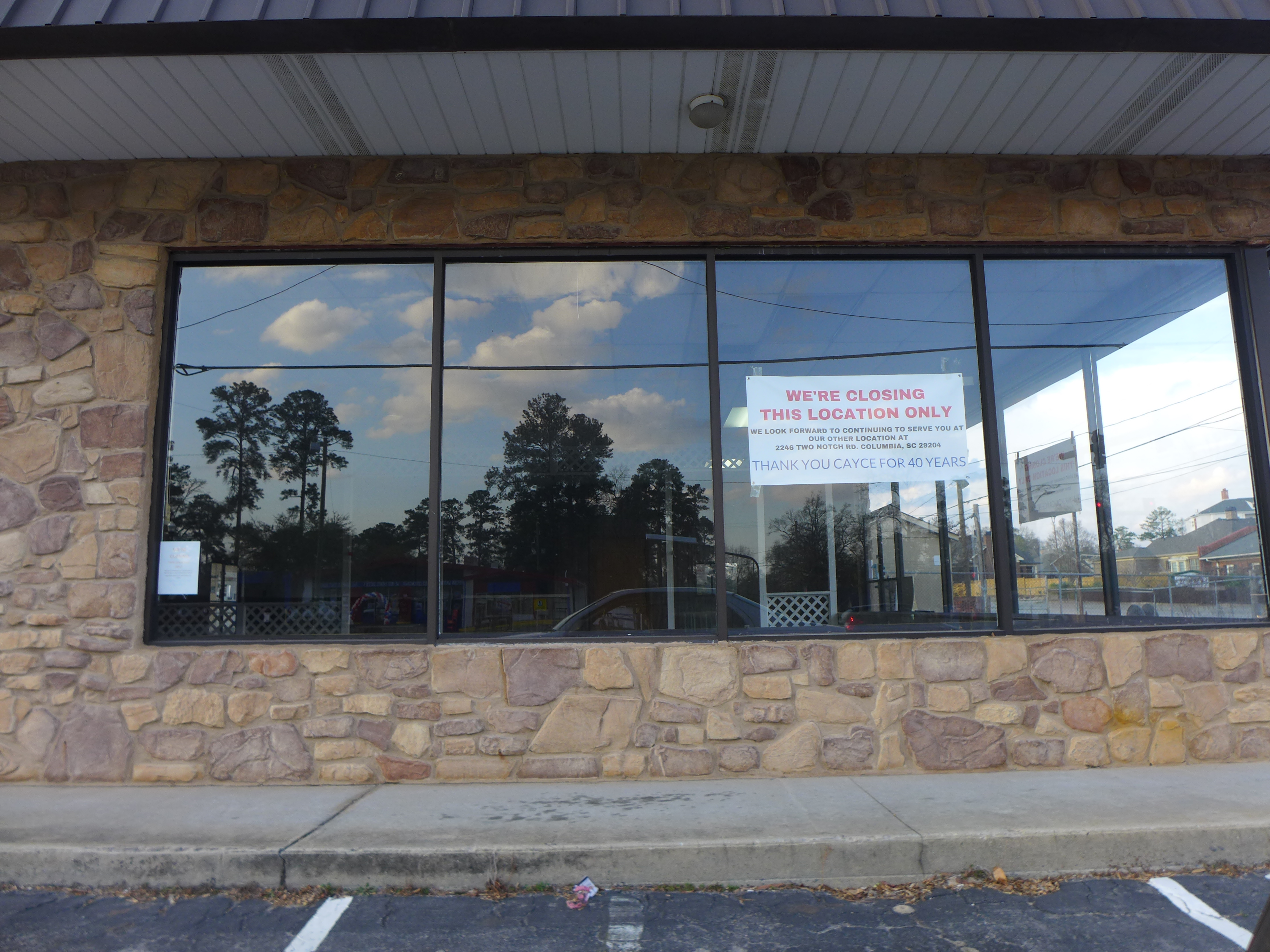 This houseware, tool & equipment rental buisiness has been on the corner of Knox Abbott and 9th for as long as I can remember, apparently some 40+ years in all. You can read a 2025 local profile of them in West Metro News, but apparently the time has come to close this location. I don't see any online news about the circumstances, but the firm remains in business with a Two Notch Road location. I never went to this storefront, but the Two Notch one was able to repair my lawn mower a number of times.