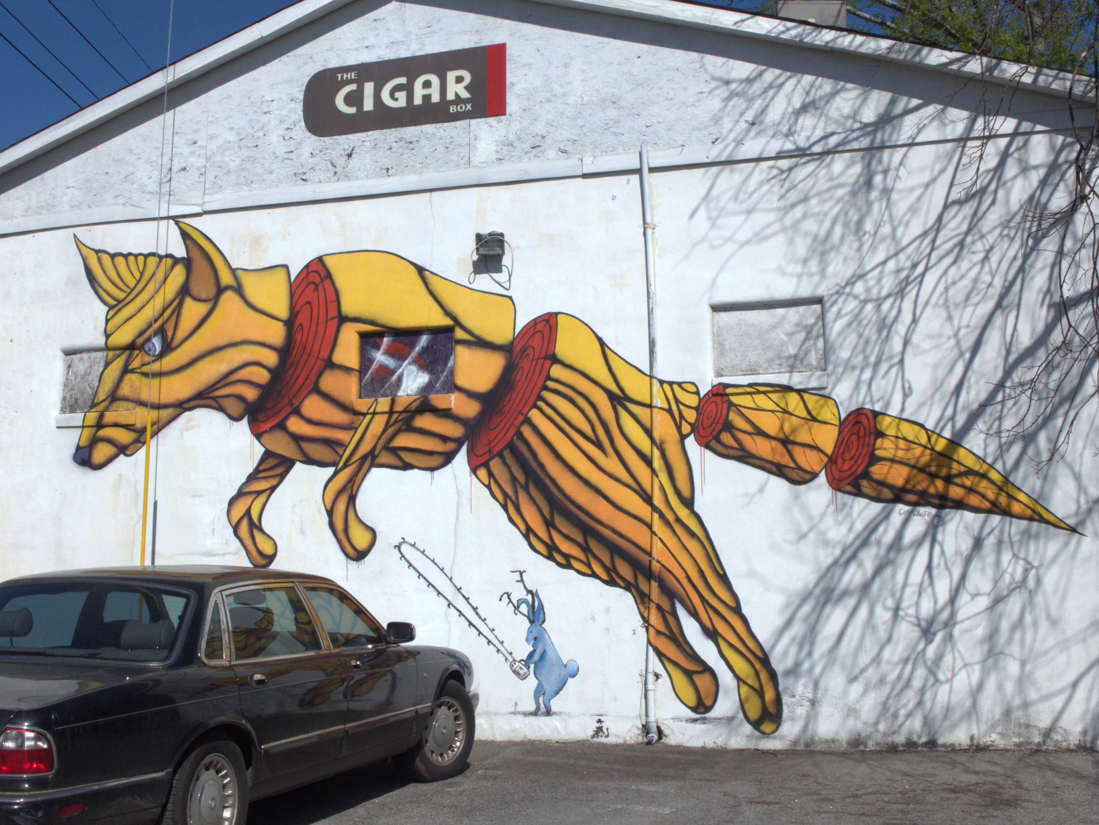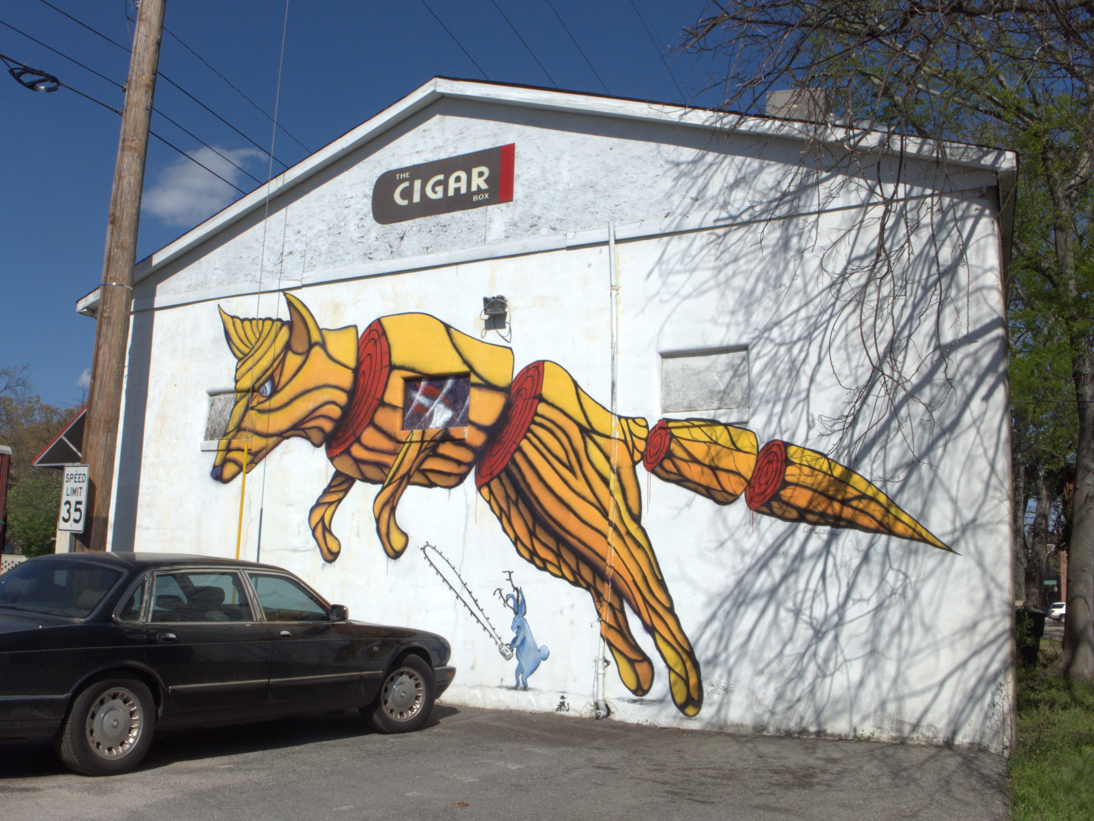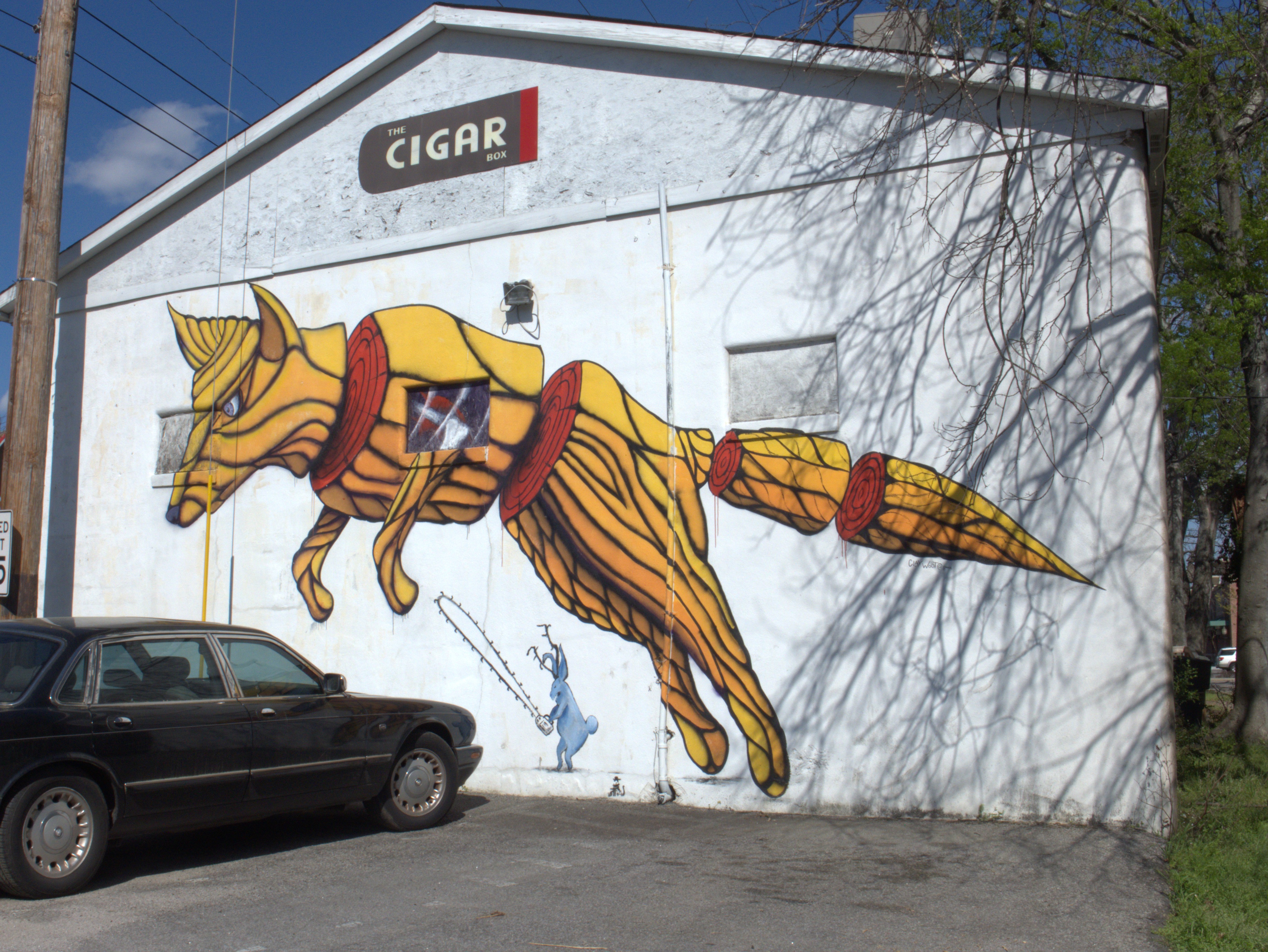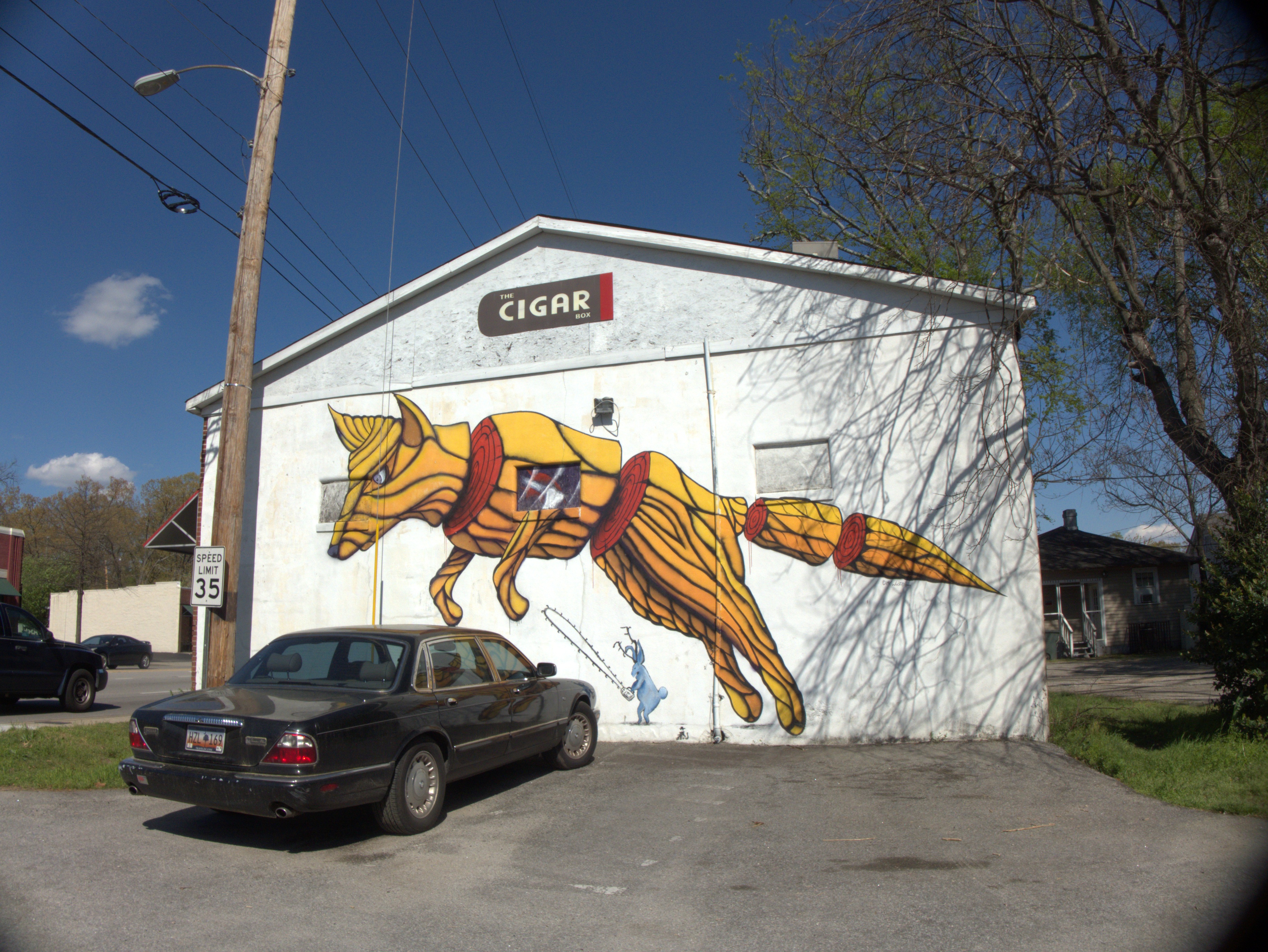 This post is mainly for the mural, which vanished sometime between September 2023 & September 2025. As I reported before, The Cigar Box moved to State Street in West Columbia in September of 2019, and closed around 12 April of 2020, which was a bad time to be running any kind of business. The Free Times story touches tangentially on this location, but says nothing about the mural.